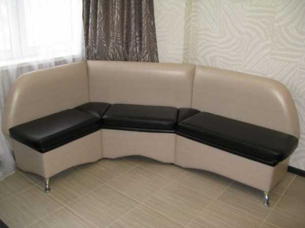 Маленький диван на кухню полукруглой формы обычно используют в комнатах среднего размера. Если помещение маленькое, то диван на кухню можно сделать своими руками.
