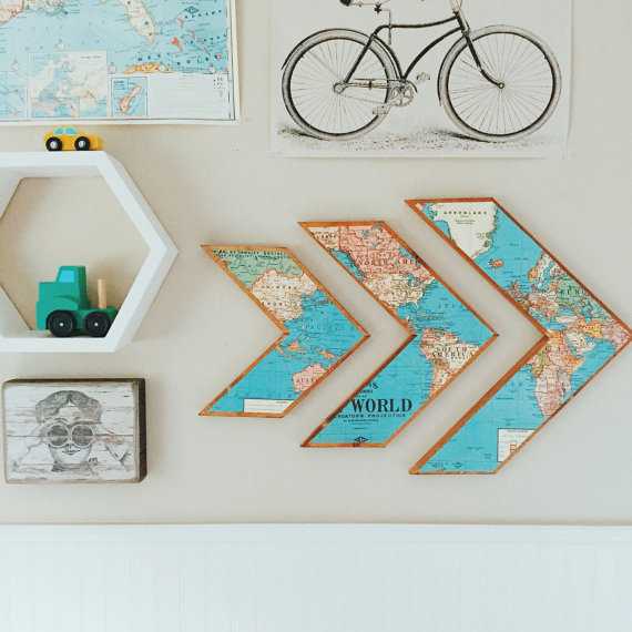 Чрезвычайно простая и очень эффектная идея для дома, помогающая решить проблему пустых стен — наклеить географическую карту. Не в любую комнату и не ко всякому интерьеру она подходит, но для детской комнаты, кабинета, балкона или лоджии, а в некоторых случаях даже для спальни или гостиной можно найти варианты. Важно правильно подобрать карту под интерьер, а бывают они не только «обычные» — географические. Есть старинные, навигационные, стилизованные и т.д.