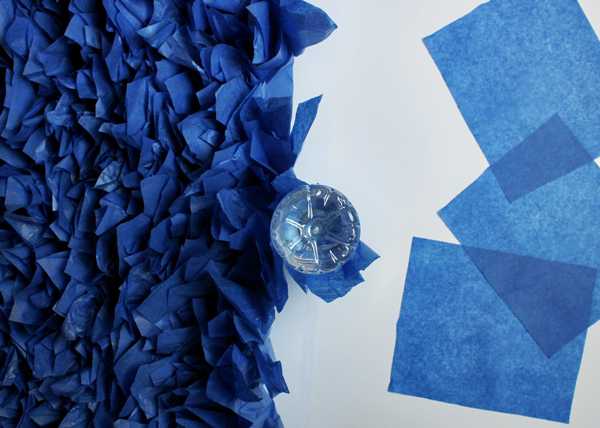 Вам просто нужно будет вырезать из бумаги квадраты подходящего размера и последовательно оборачивать ими бутылку, а потом приклеивать к стене. Чем длиннее будут бумажные «хвостики», тем более шелестящего и «густого» эффекта вы добьетесь.