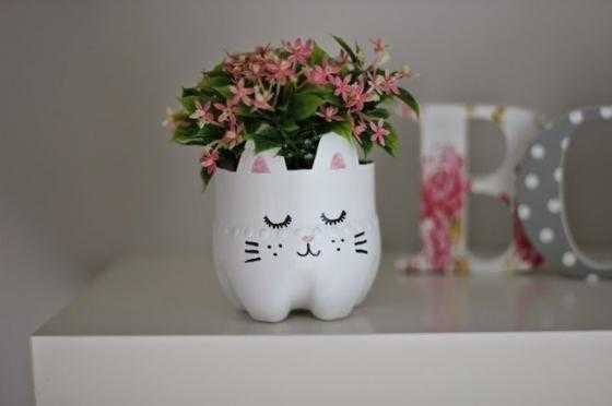 После этого маркером нарисуйте забавную мордочку – ваш прекрасный горшочек-зверек готов! Остается только подобрать подходящее растение. Разумеется, дело не ограничивается зверушками: можно изобразить на бутылке горшочек с кашей, чтобы каждое утро рассматривать его на подоконнике и повелевать, как в сказке: «Раз, два, три, горшочек, вари!» Подобная фраза наверняка наведет вас на еще более оригинальные идеи для дома!