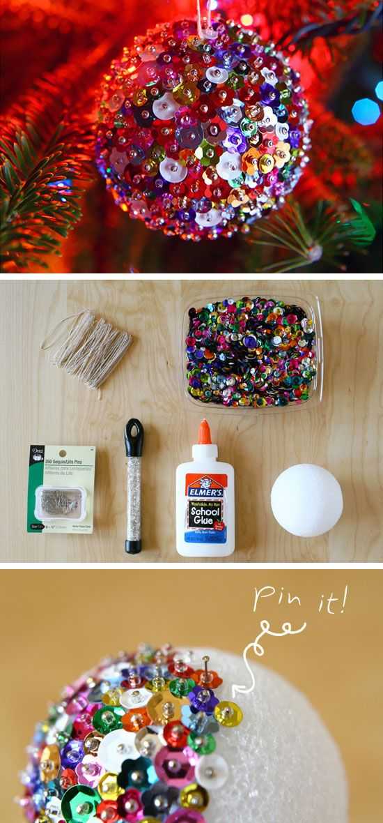 2. Милые украшения на ёлку из пайеток
