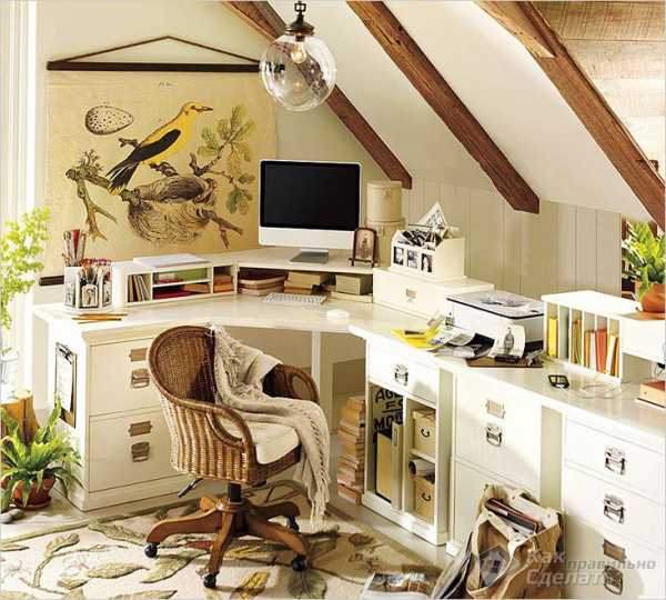 Чердак может стать кабинетом. Фото с сайта decor.cloud