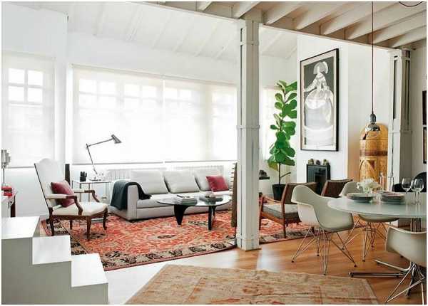 Просторные помещения стиля лофт кажутся еще больше, разделенные рядом бетонных опор. Создается иллюзия чередования зон за рядами колонн, и возникает ощущение бесконечного пространства.