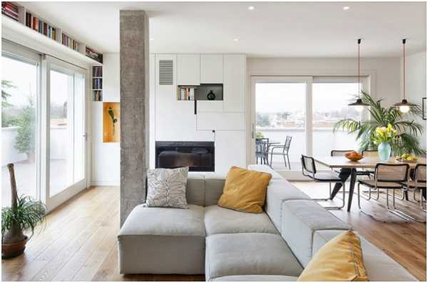 Современный интерьер квартиры с использованием колонн