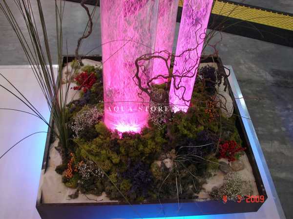 Размер и функциональность композиции (возможность настраивать скорость движения пузырьков, управлять подсветкой) – вот определяющие параметры, которые задают цену при изготовлении пузырьковых колонн.
