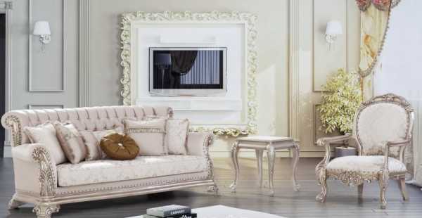 Формы здесь имеют большое значение, всегда наличие спинок, витиеватые изгибы ножек и подлокотников. Обязательно позолота в декоре для придания респектабельности.