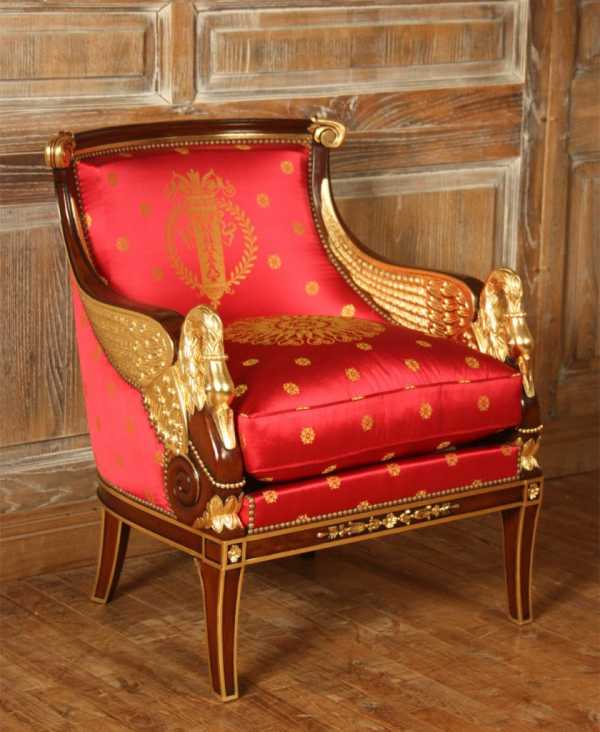 В «имперском стиле» каждая деталь важна, много резьбы, мозаики и позолоты. Кресла должны быть не только с резьбой, ножки с изгибом в форме лап животных.