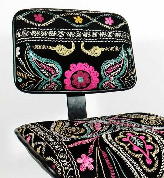 Такие офисные стулья станут украшением офиса для сотрудников, которым надоел строгий стиль. Особенность стульев заключается в обивке, которая щедро усеяна цветами и растительным орнаментом. Спинка и сидение могут быть дополнены вышивкой или аппликациями.