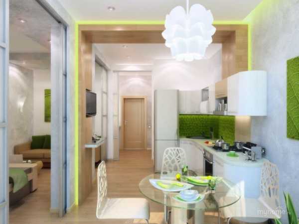 Лучшим вариантом будет установка светодиодного освещения для освещения рабочей зоны, а вот основную часть кухни можно украсить эффектной люстрой.