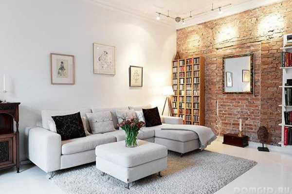 Оформление комнаты будет выглядеть изысканно, если подобрать удачное сочетание кирпича с остальными элементами комнаты.