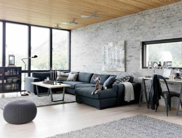 - Фрагмент. Кладка составляет небольшую часть стены, подчеркивая основательность стен дома. Такой прием используют, например, в скандинавском стиле.