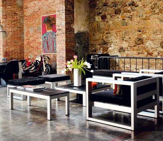 Великолепный дизайн стильной городской квартиры с использованием искусственно состаренного кирпича