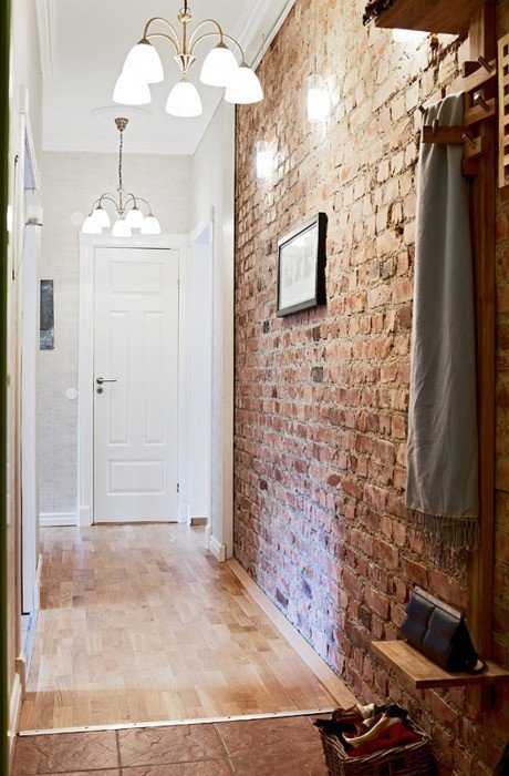Состаренный кирпич в современном интерьере прихожей станет продолжением «уличного» акцента.