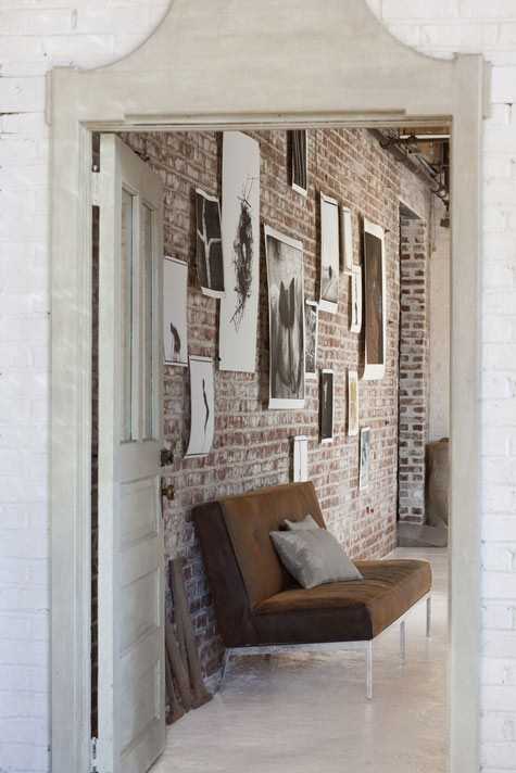 Белые кирпичные стены служат прекрасным фоном для уютного уголка отдыха.