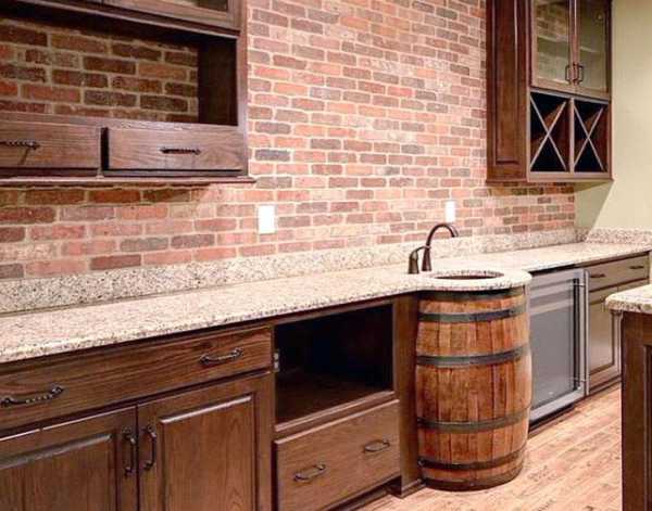 Оригинально, эксклюзивно выглядит и кухонная столешница, изготовленная из кирпичной кладки.