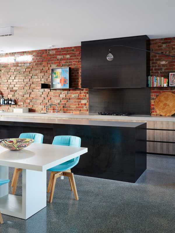 Кирпичную кладку можно использовать для создания барных стоек, перегородок, создания комнат-студий, отделив обеденную зону от рабочей.