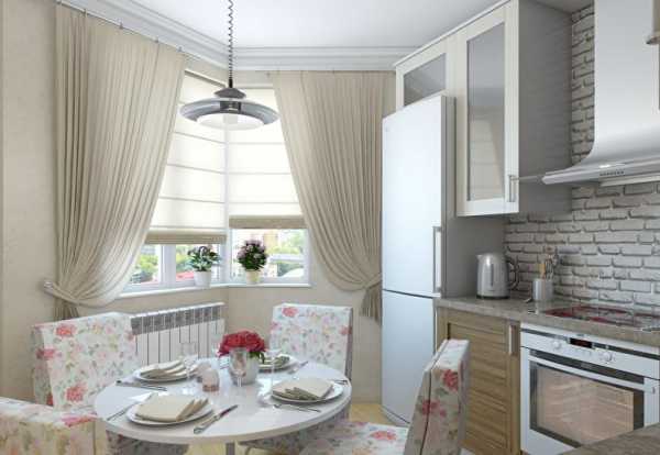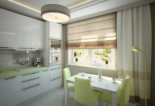 Достаточно универсальными вариантами для малогабаритной кухни являются жалюзи и рулонные бамбуковые изделия. Еще одно удобное решение — складывающиеся гармошкой римские шторы.