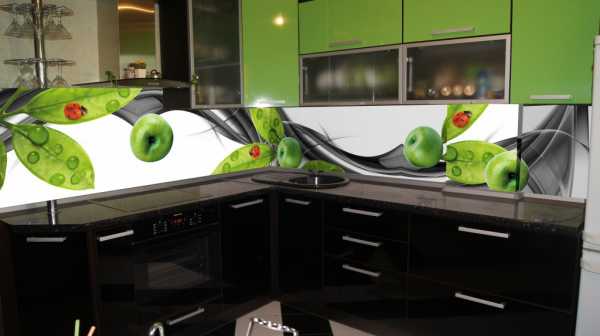 Фото кухонного фартука из стекла с рисунком.