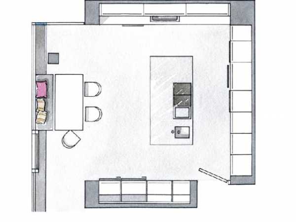 Схематический дизайн-проект кухни с размерами.