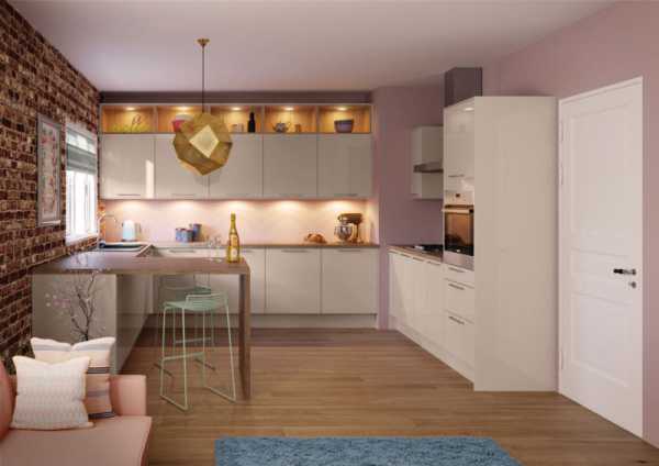 Чтобы визуально увеличить размеры комнаты и наполнить светом пространство, угловые кухни советуют покупать в теплых, полупрозрачных цветах.