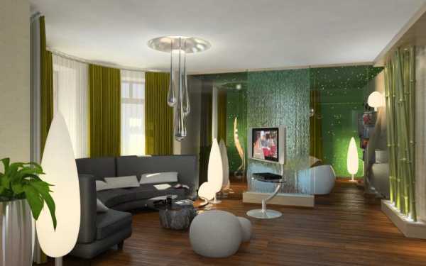 Полы – можно использовать доски, штучный паркет, плитку из натурального камня, пробковое покрытие. В зонах отдыха будут вполне уместны плетеные бамбуковые или соломенные циновки. А от ковров придется отказаться полностью — эко стиль их не приемлет. Современный стиль эко допускает использование наливных 3D–полов для получения максимального эффекта земли.