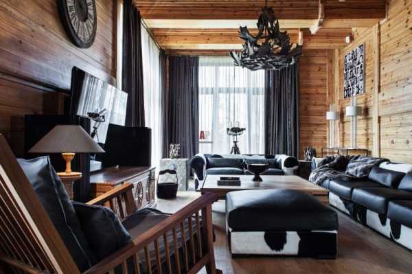 Стены – для их отделки вполне подойдет натуральный камень или кирпичная кладка. Однако в этом случае следует знать меру. Полностью заковывать интерьер в камень нежелательно, лучше ограничиться небольшими фрагментами на стенах коридора, кухонном фартуке, зоне отдыха и т. д.