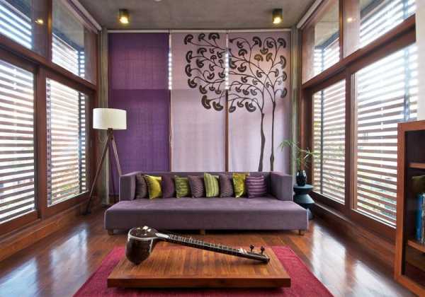 Полностью открывать окна, лишая проемы защиты от жгучего полуденного солнца — разумно в определенных пределах и климатических зонах. Все зависит от инсоляции — если повезло и солнца в доме слишком много, то современные жалюзи спокойных тонов будут отличным решением. Массивные двери уходят вместе со стационарными перегородками из кирпича, блоков и гипсокартона на каркасе — вместо них легкие тканевые или бамбуковые мобильные ширмы и полупрозрачные раздвижные перегородки.
