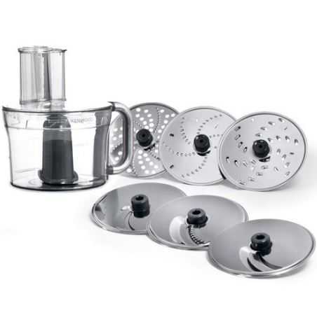 Стандартный комплект насадок включает в себя нож для измельчения и нарезки продуктов, дисковую насадку с диагональной прорезью для шинковки и тёрку. Некоторые механизмы могут иметь дополнительные насадки.