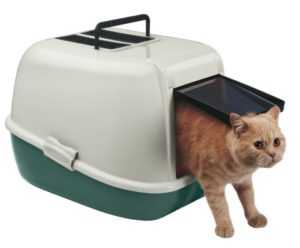 Многие хозяева предпочитают покупать закрытый туалет для кошки или как его еще называют лоток-домик. Такое изделие легко чистится, да и животным очень нравится. Иногда модель оснащена дверцей. Она не создает особых неудобств питомцу, а запах отлично задерживает внутри лотка. Правда, по нраву такая дверца далеко не каждому коту.