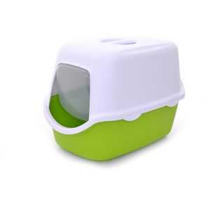 Закрытый туалет для кошки представляет собой двухъярусное сооружение, в нижней части которого находится закрепленный лоток, а в верхней — дверь и вентиляционное отверстие. Дверное отверстие может оставаться открытым или же закрываться, все зависит от пожеланий хозяина и умений питомца. Лоток-домик для кошек идеально подходит тем семьям, где проживают маленькие дети или другие животные. Спрятанный внутри конструкции нужник позволяет хозяину животного не беспокоиться за то, что кто-то станет копаться в наполнителе и содержимом, кроме самого питомца. Плюсы: хорошо удерживает неприятный запах, кошка не справит нужду мимо, наполнитель останется на своем прежнем месте и не будет разбросан по полу, идеален для пугливых животных. Минусы: довольно высокая стоимость, приходится разбирать конструкцию при очистке туалета домика для кошек.