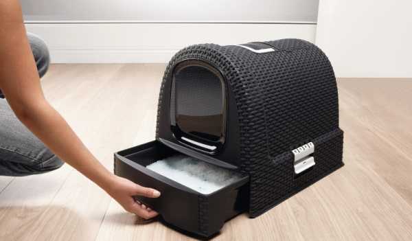 Автоматический лоток — это комплекс, который сам очищает и добавляет наполнитель, имеет эстетичный вид. Он снабжен фильтрами, которые избавляют от неприятного запаха. О том, что необходимо очистить содержимое, системе дает знать специальный датчик, который производит уборку только в отсутствии животного. После того как кошка сходила в туалет, использованный наполнитель конвейером выбрасывается в специальный мешок, а на его место насыпается чистый. Плюсы: устраняет неприятные запахи, самоочистка позволяет хозяину не переживать по поводу уборки, данный комплекс самостоятельно дезинфицирует лоток. Из минусов можно выделить высокую стоимость и необходимость периодически производить замену фильтров, которые устраняют запахи.