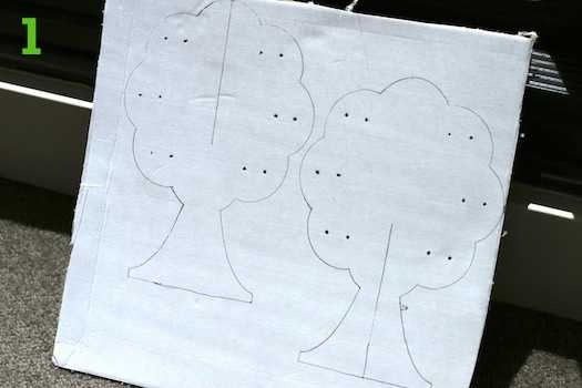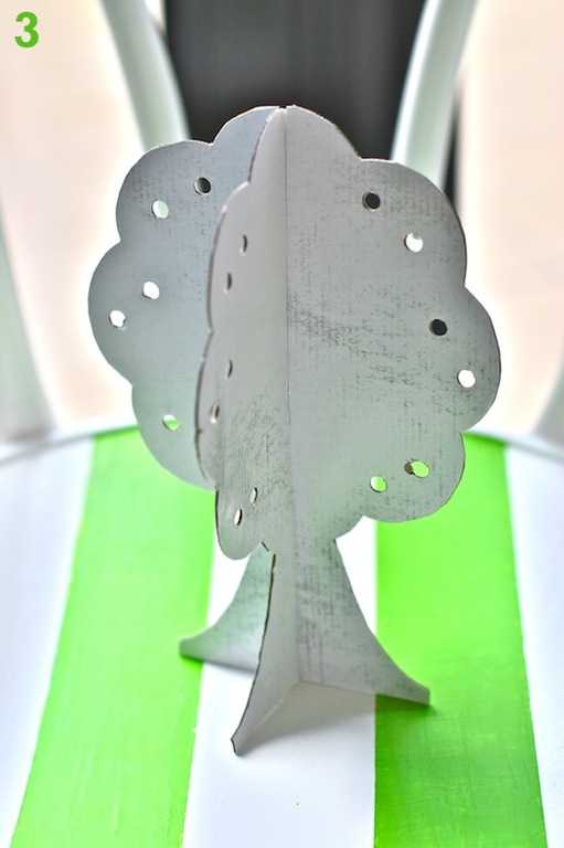 Теперь нам пригодится дырокол. Отверстия можно расположить так, как указано на рисунке, но вы можете продырявить ваше дерево в хаотичном порядке — все в ваших руках и фантазии.