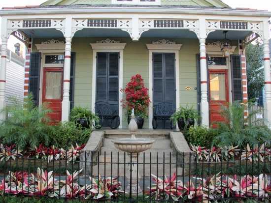 Здесь домовладельцы пожелали иметь возможность отдыхать во дворике, наблюдая за своими детьми и общаясь с соседями. Их мечта была исполнена за счет расширения крошечного крыльца и добавления к нему новых ступеней, ведущих к широкому проходу с длинной изогнутой скамьей. Низкий белый заборчик стал отделять парадный двор от тротуара и делать его уютным, словно комнатка на открытом воздухе.