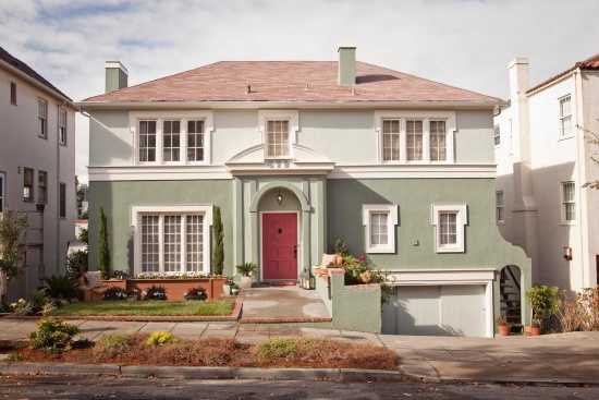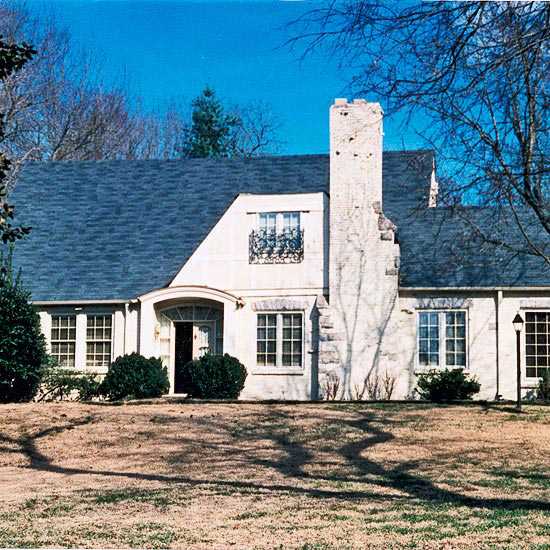 Чтобы вернуть этому элегантному дому его исторический стиль, команда мастеров решила не только изменить цвет фасада, но и добавить к нему белые молдинги (между этажами, над окнами и гаражом). Благодаря этому ходу и мягкой двухцветной палитре дом стал казаться гораздо больше и внушительней. Кроме того, неприглядный участок слева от входа превратился в симпатичную террасу, выделенную красным кирпичом, сочетающимся с пурпурной передней дверью.