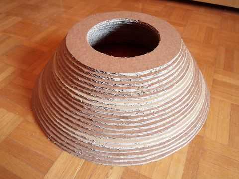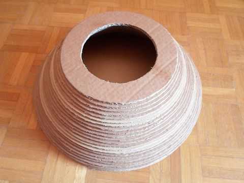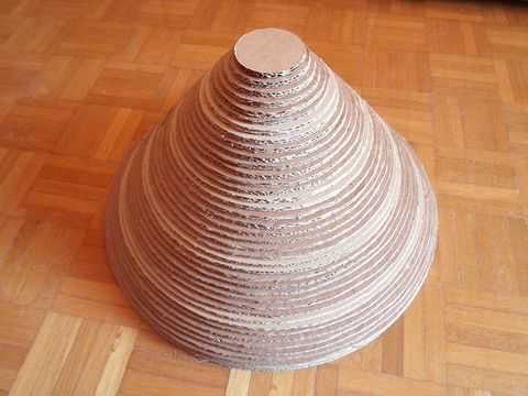 В результате у вас должна получиться круглая пирамида из картона, состоящая от самого большого диска в основании кошачьего домика и до самого маленького на вершине.