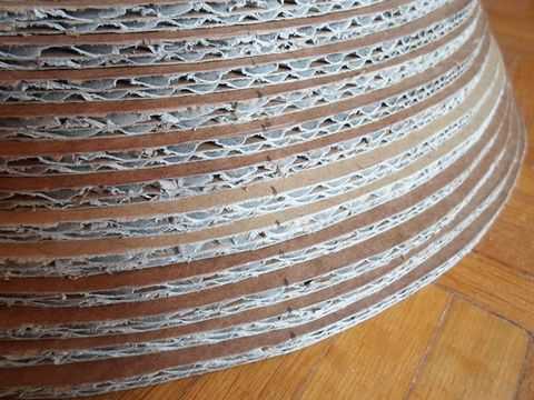 После очередной сборки картонной конструкции проверяют правильность предыдущих действий, при необходимости делают корректировки. Затем переходят к этапу склеивания. Клей наносится на середину колец, начиная с нижнего элемента. Детали периодически спрессовывают для качественного соединения.