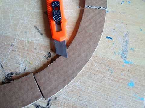 Это будет достаточно сложный шаг. Вам нужно будет по меткам, отмеченным на прошлом этапе, нарисовать по две прямые линии, по которым полоса картонного круга будет разрезана.