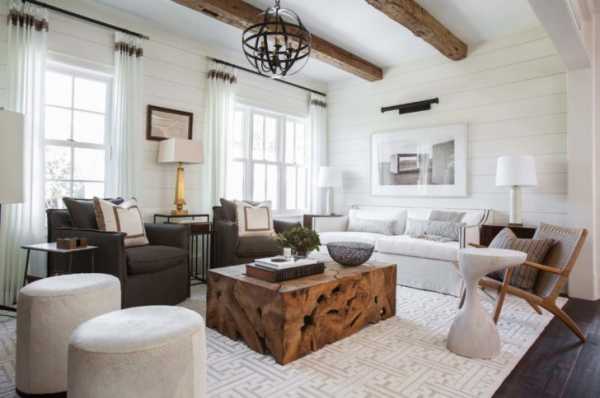 Дизайнер решил поиграть на сочетании текстур и материалов, при этом придерживаться нейтральных цветовых сочетаний. Так теплое дерево подружилось с холодным металлом, а белая отделка потолков и стен с темным деревом на полах. Изюминка интерьеров – это роскошные потолочные балки из старого дерева, с выраженной текстурой.