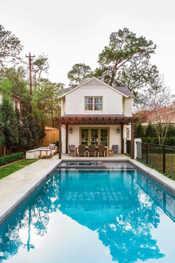 Хозяева решили по максимуму проявить заботу и оборудовали возле дома большой бассейн, две зоны отдыха – открытую и под навесом. В целом, получился великолепный небольшой и очень стильный домик, где может постоянно проживать небольшая семья. Да, а еще, в домике даже подсобное помещение-мастерская, выглядит просто очаровательно.
