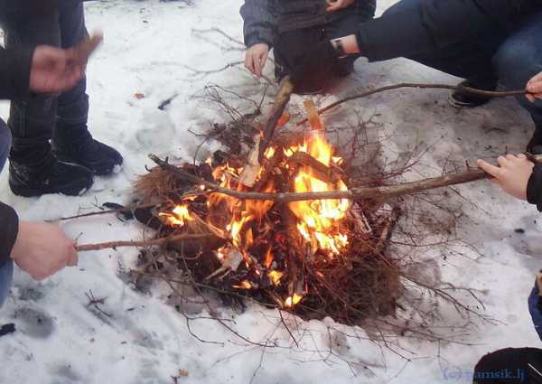 Мгновение и дети уже веселятся, поджаривая хлеб на веточках (мы были в пост, поэтому колбасным радостям не предавались).