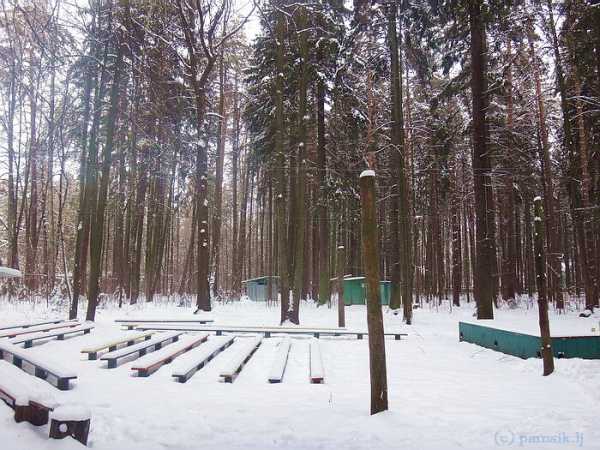 Достаются термоса с горячим чаем, пакеты со сладким, и вот уже активные родители выстроились в хоровод вокруг костра и мы играем во что-то классное и веселое. Ловим неловких, салим, догоняем, хохочем. Здесь ещё есть специальная летняя сцена и ряды заснеженных сейчас скамеек — именно тут проходят веселые летние Костры, которые придумал и так любил Корней Иванович.