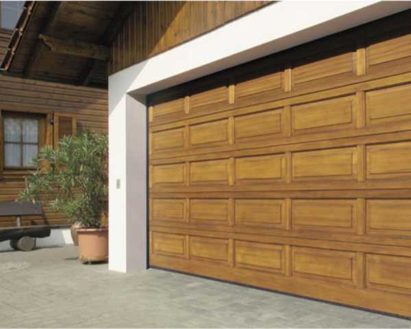 - Секционными, система которых сделана из блоков стали, заполненных при помощи пенополистирола. Блоки выглядят продольными панелями, которые во время открывания ворот – складываются. Когда ворота полностью открыты, панели складываются под самым потолком гаража. Преимущества такого типа: в их простоте открывания; для того, чтобы попасть в гараж не нужно дополнительного места перед ним; цвета, предлагаемые на сегодня производителями, могут быть самыми разнообразными; вполне доступные цены; свойства гидроизоляции достаточно высоки; да и размеры ворот Вы можете выбрать из широкого разнообразия доступных от производителя. Единственным возможным недостатком таких ворот может стать поломка механизма.