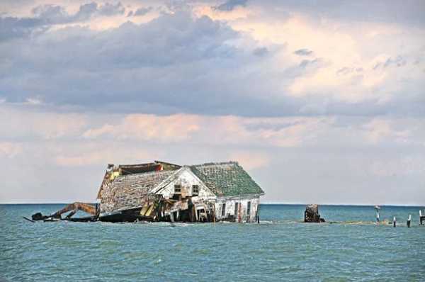 Раньше на острове жили рыбаки, вода поднималась, и вскоре суши не осталось, но дом простоял еще на удивление долго.