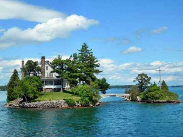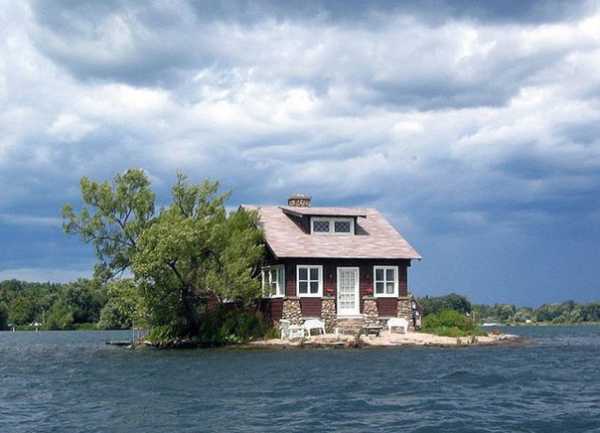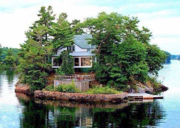 Домик на реке Святого Лаврентия находится на границе между Канадой и США на крошечном острове, вряд ли там еще даже сарайчик поместится.