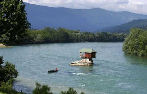 Так несколько парней в Сербии решили построить себе клуб на острове посреди речки Дрина. Дело было в 1968 году, но домик стоит до сих пор, в нем и сейчас клуб, где желающие могут взять в аренду каяк.