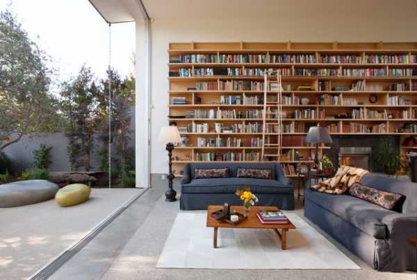 Отделите библиотечным шкафом часть гостиной, для создания интимной зоны для чтения или отдыха. Хотите иметь домашнюю библиотеку в современном доме? Тогда вы должны подойти к этому творчески – выберите открытое пространство гостиной или уютный уголок с выходом на террасу.