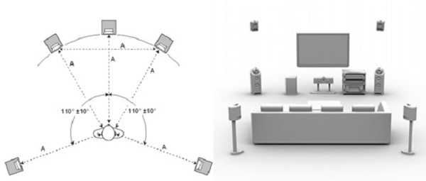 Необходимо правильно расставить комплект, чтобы качество воспроизведения звука было максимально приближенно к уровню настоящего кинозала. Ведь для получения обычного звука достаточно установить простые стерео колонки, а нам важен эффект акустики.