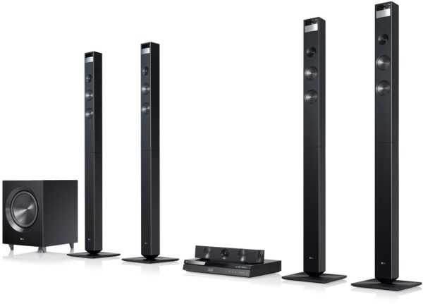 Домашний кинотеатр — это целая система, включающая в себя любой телевизор (или проектор), 6 колонок (акустическая система 5.1), многоканальный усилитель мощности (AV-ресивер), а также любой источник аудио-/видеосигнала (DVD- или Blu-Ray-плеер, HD-медиаплеер, компьютер и пр.)