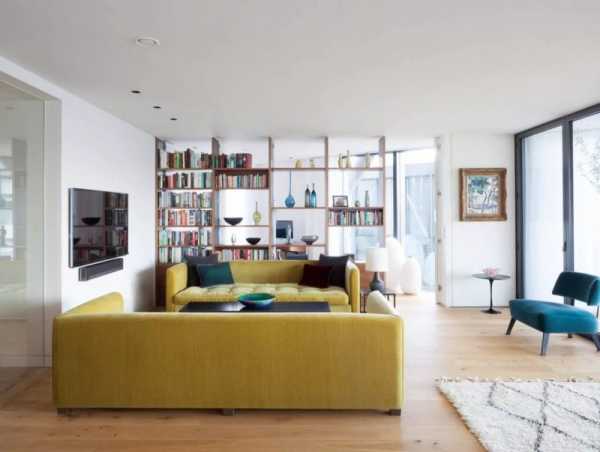 - Телевизор + книги. Соберите в одной комнате не только диски с любыми фильмами, но и книги. Поставьте открытый стеллаж, заполните его книгами и домашняя библиотека в миниатюре готова. Как видите, в такой комнате можно не только смотреть телевизор, но и читать.