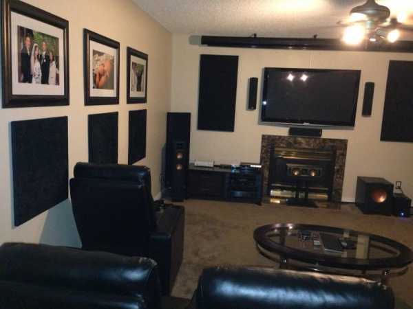 Желательно покрыть стены домашнего кинотеатра обивкой, которая создаст правильную акустику.